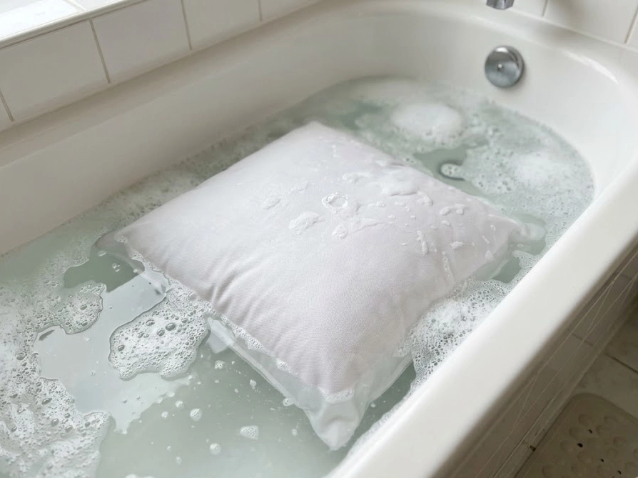浴槽で足踏み洗いをするという方もいらっしゃいますが、ポリエステルクッションには足の力だと強すぎることがあります。
