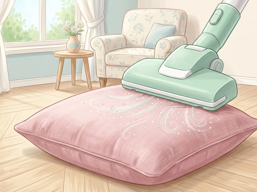 ・掃除機をかけるついでにクッション表面もひと吸いする。