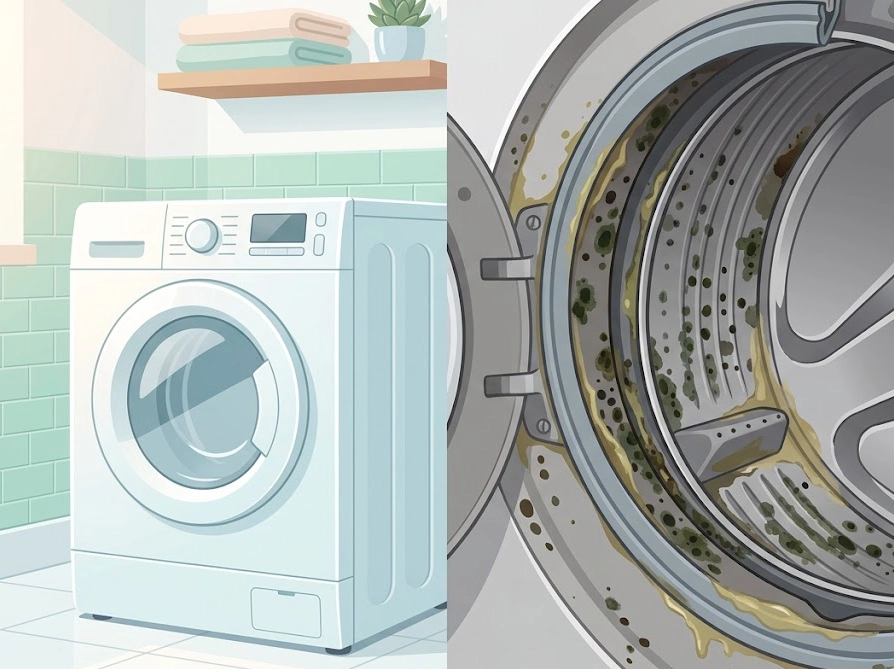 洗濯槽の表と裏のカビ汚れの対比イラスト