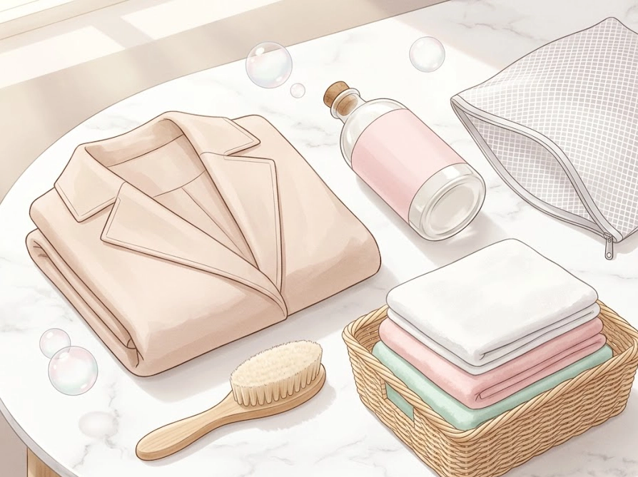 ポリエステル製のコートを自宅でキレイにするには、まず「本当に洗えるかどうかの見極め」と「正しい道具の準備」がカギになります。