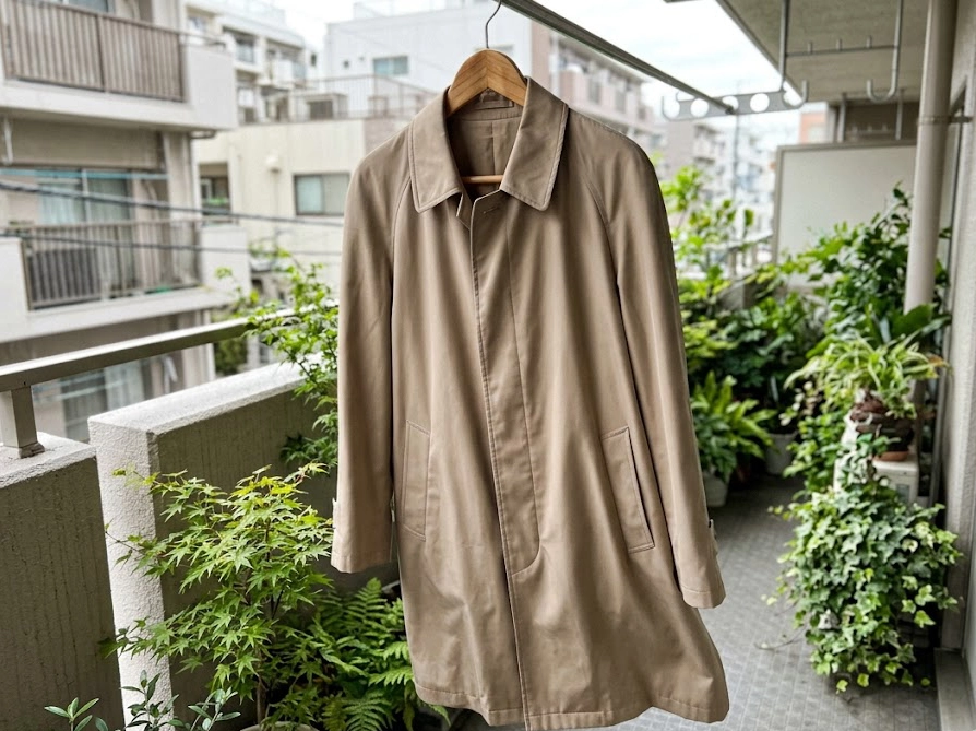 トレンチ型のような薄手ポリエステルスプリングコートは、シワが一度つくと定着しやすいのが厄介なところです。