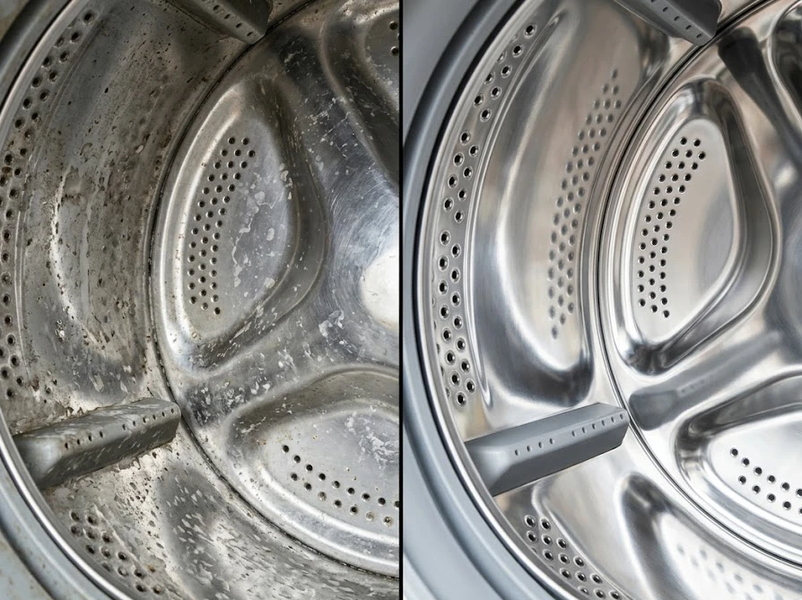 市販クリーナーは、手が届かない洗濯槽裏側の汚れを「薬剤で浮かせて落とす」表面的なケアです。
