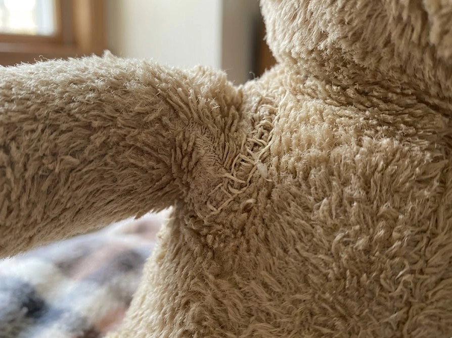 ドラム式洗濯機でぬいぐるみを洗う前に、必ず確認しておいてほしい重要ポイントがあります。 それは、「小さなほつれや破れがないか」のダメージチェックです。 見た目はきれいでも、よく遊ばれているぬいぐるみは気づかないうちに縫い目が弱くなっていることがよくあります。 このチェックを省いてしまうと、洗濯後にふたを開けた瞬間に大惨事……ということになりかねません。 特に手足の付け根や首まわり、背中の「綿入れ口」の縫い目は力がかかりやすいので、念入りに観察してくださいね。